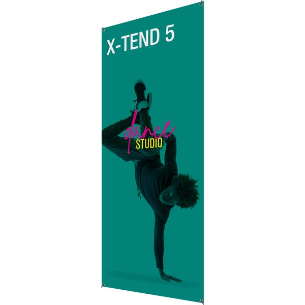 X-Tend 5 is an economy spring back banner stand, featuring an easy-to assemble, lightweight X-shape frame and vinyl graphic with #2 grommets in each corner. Graphics easily attach to the frame for a simple display, and a carry bag for storage and transportation is included.