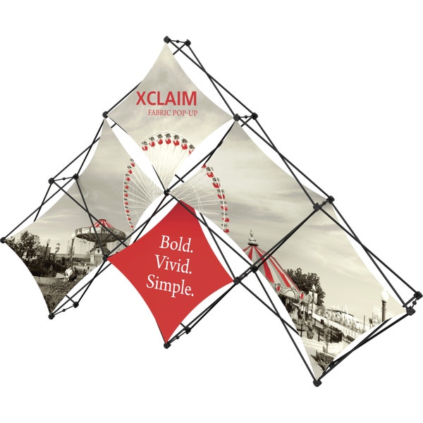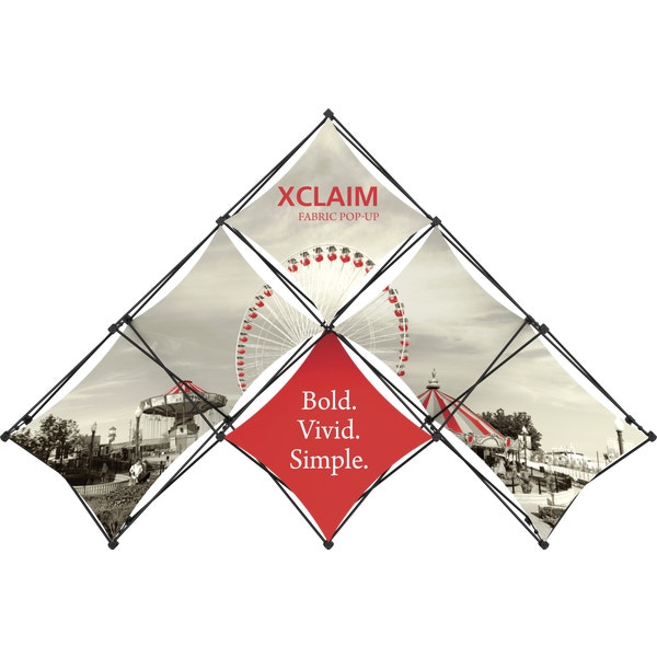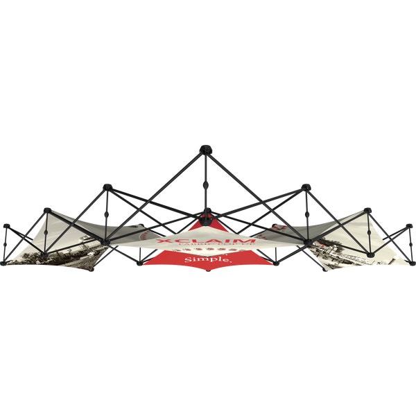– 10ft wide, pyramid-shaped tabletop fabric popup display system