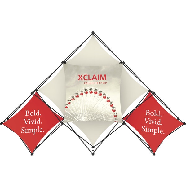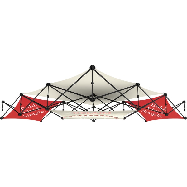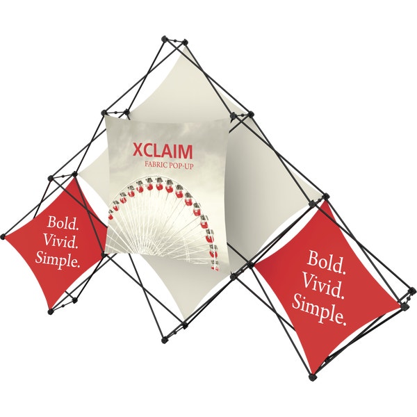 – 10ft wide, pyramid-shaped tabletop fabric popup display system