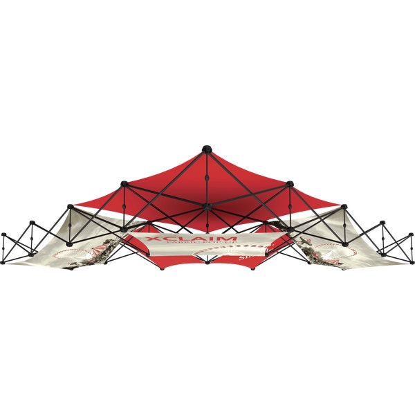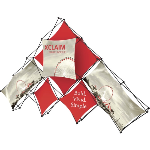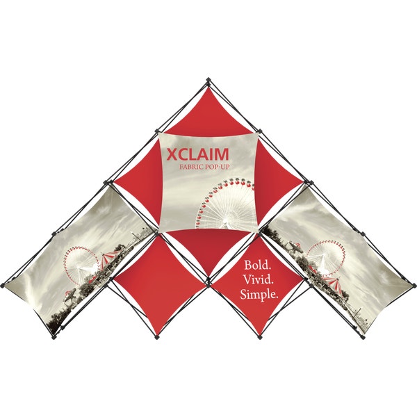 – 14ft wide, pyramid-shaped tabletop fabric popup display system