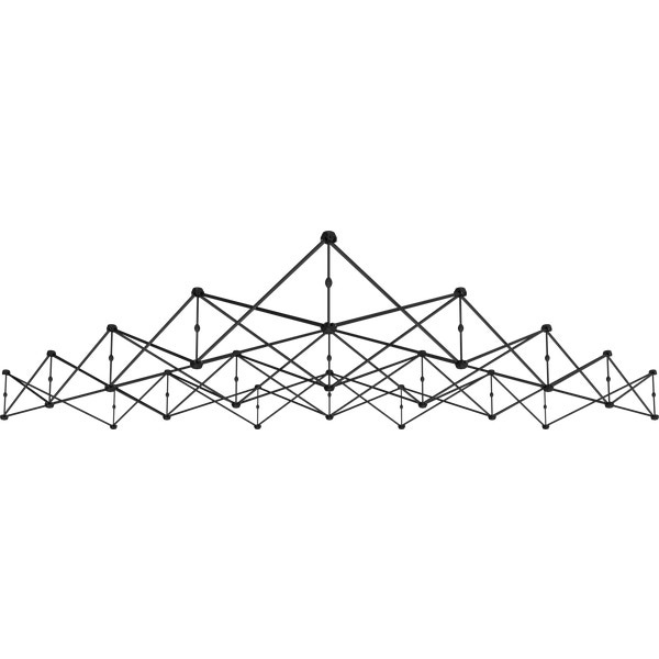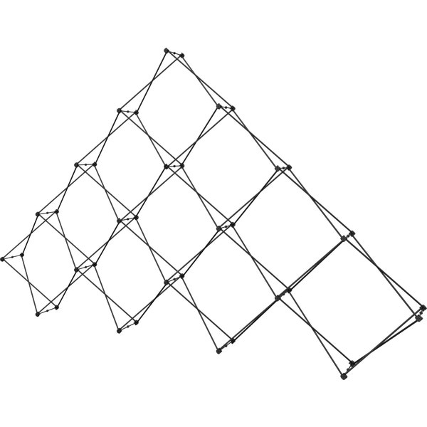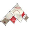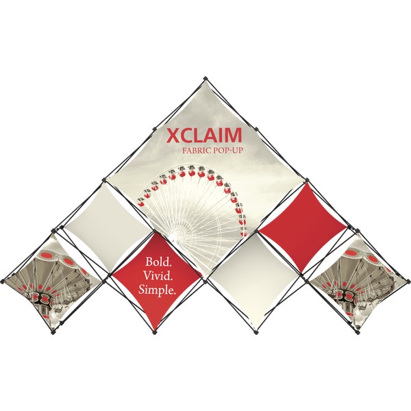 – 14ft wide, pyramid-shaped tabletop fabric popup display system