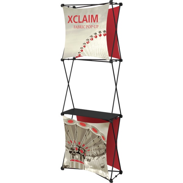 The Xclaim™ Shelf is an optional 2.5ft wide (1 quad) shelf accent for Xclaim Fabric Popup displays. Attaching shelves to assembled Xclaim units is easy. No tools are required for assembly – simply attach stabilizing clips to the Xclaim scissor arms, and place the shelf on top! Shelves are the perfect accent to add product, additional space for printed literature or to enhance your Xclaim display. Choose from four color options for the solution that is right for your display.