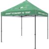 Strong and stable, the Zoomâ„¢ 10ft Economy Popup tent features a square steel frame, making it an ideal display at any outdoor event. Stock and custom printed graphics are UV and water resistant, designed to withstand the elements.