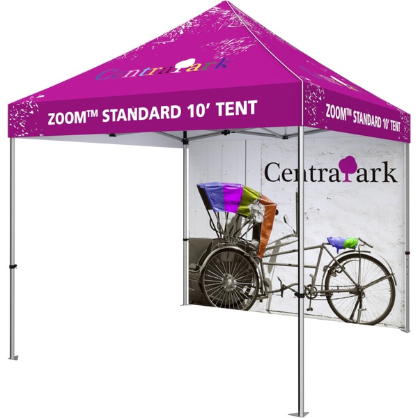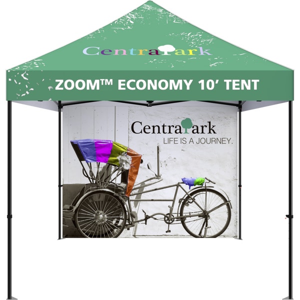 Add additional space for messaging and branding to your Zoomâ„¢ Economy and Standard 10ft Popup Tent with a 10′ full wall. Available in your choice of five stock colors or custom printed, the Zoom 10′ Tent Full Wall is a great backdrop for use at events and more.