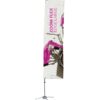 The dynamic Zoom Flex Edge Large Flag provides the ultimate advertising display solution for your business. The flag features a durable fiber pole and wind-resistant flag, usable in outdoor environments but also an excellent option for indoor display needs. Heights vary based on flag shape, and can extend up to 178.38″ in height (14.8ft). Ground stake and storage bag are included. Product not designed to withstand adverse weather or high wind. Weather damage is not covered by product warranty.