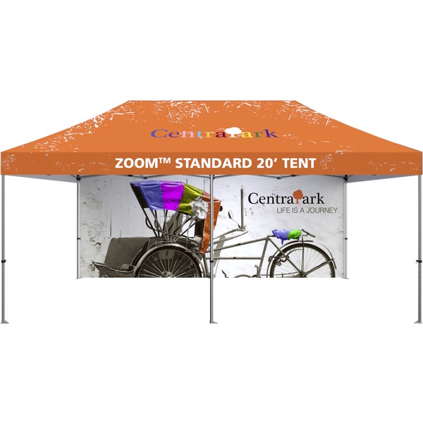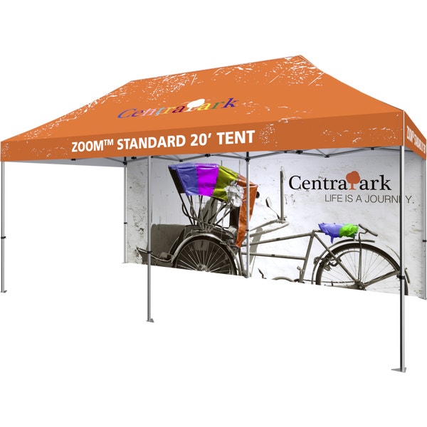 Offered in five stock colors or custom printed graphics, the Zoomâ„¢ Standard 20ft Popup Tent Full Wall is an optional accessory to increase branding and messaging space. The full wall encloses a side of the tent for additional protection from outdoor elements.