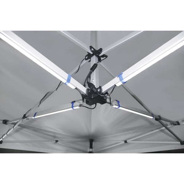 The Zoom Tent Light Kit provides attention-grabbing illumination to popup tents at outdoor venues and events! The Zoom Tent Light Kit is USB battery powered (USB battery/charger not included) and the lights include built-in magnets for quick connection to steel frames and hook & loop for connection to aluminum frames. Lights attach to frame easily. Compatible with most 5ft, 10ft and 20ft tents. Battery-USB charger not included.